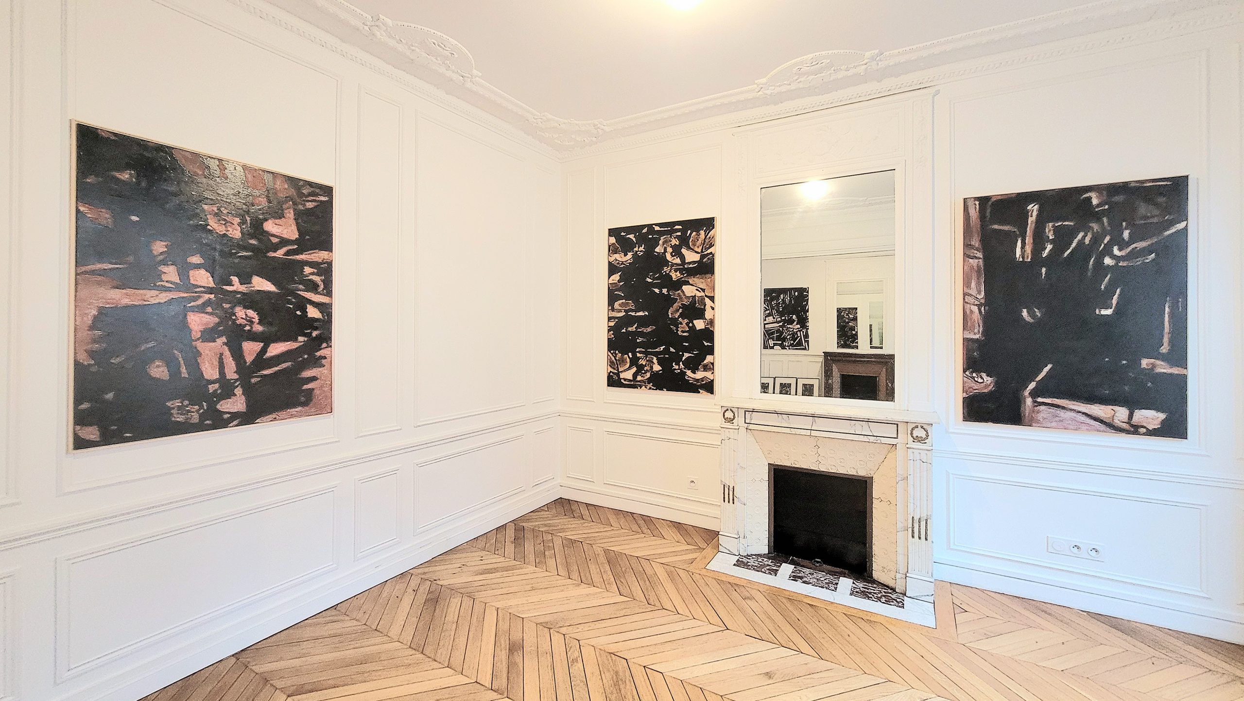 The works follow their own emotional inner workings and and emanate the power of sudden action or unexpected drive. The inherent relationship of the works echoes subtle references to movement and responds to perceptions of motion and gesture branding them with a strong common signature element and forming a stringent line of narration within the show.