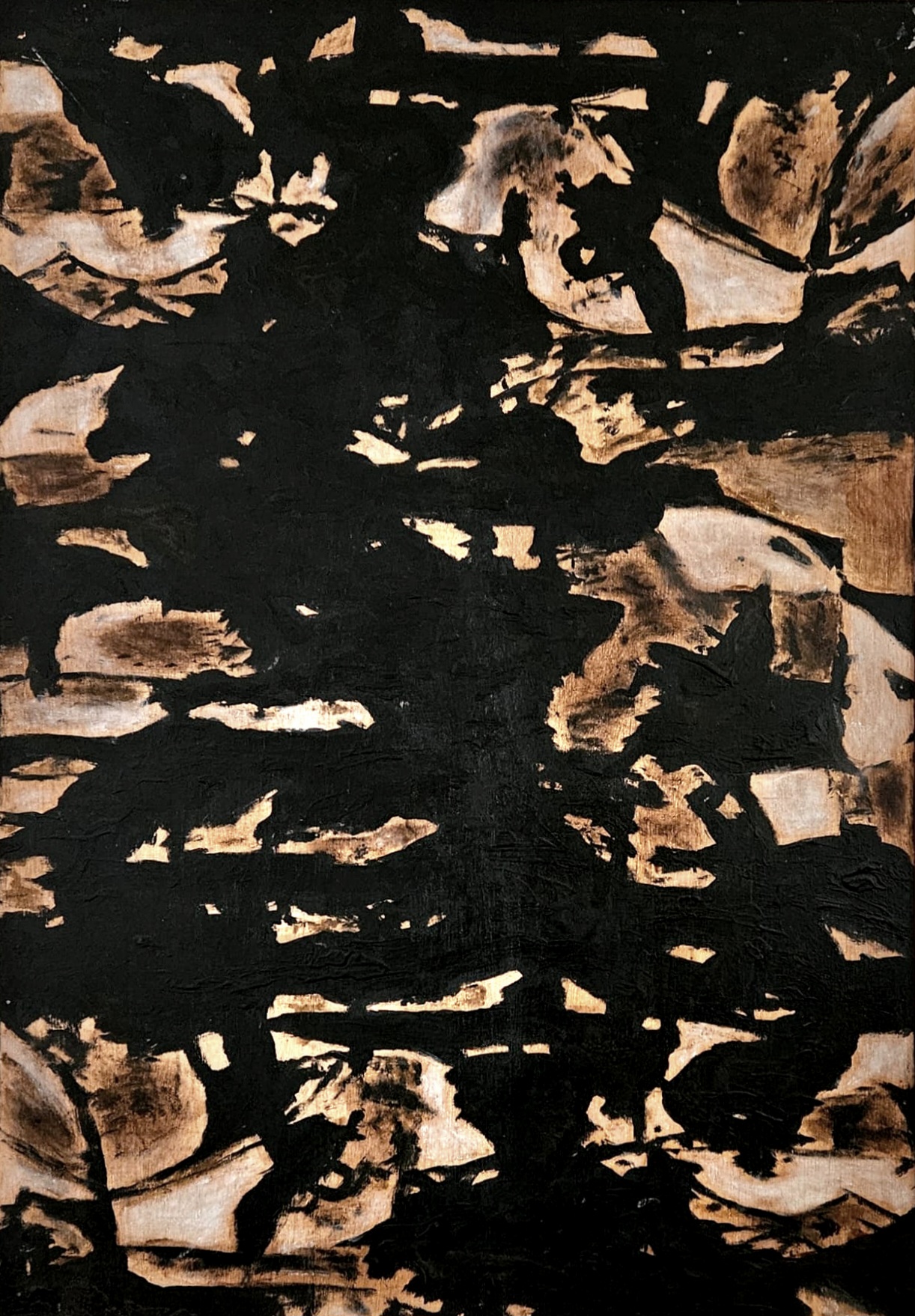 The many forms and fragmented figures of these works tell a vivid story. They are awakened to live by blending image segments from background into foreground and vice versa.